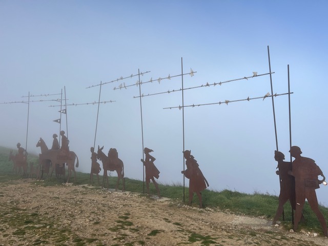 Via Het hoog in de Pyreneeën gelegen Roncevalles dalen we af in het Spaanse landschap. De dorpen zijn hier rijker. Waarschijnlijk vanwege de vele duizenden pelgrims die ieder jaar weer het nodige uitgeven aan herbergen en restaurants. In deze tijd van het jaar is het aantal kleiner. Iedere dag lopen er zo’n 10-15.